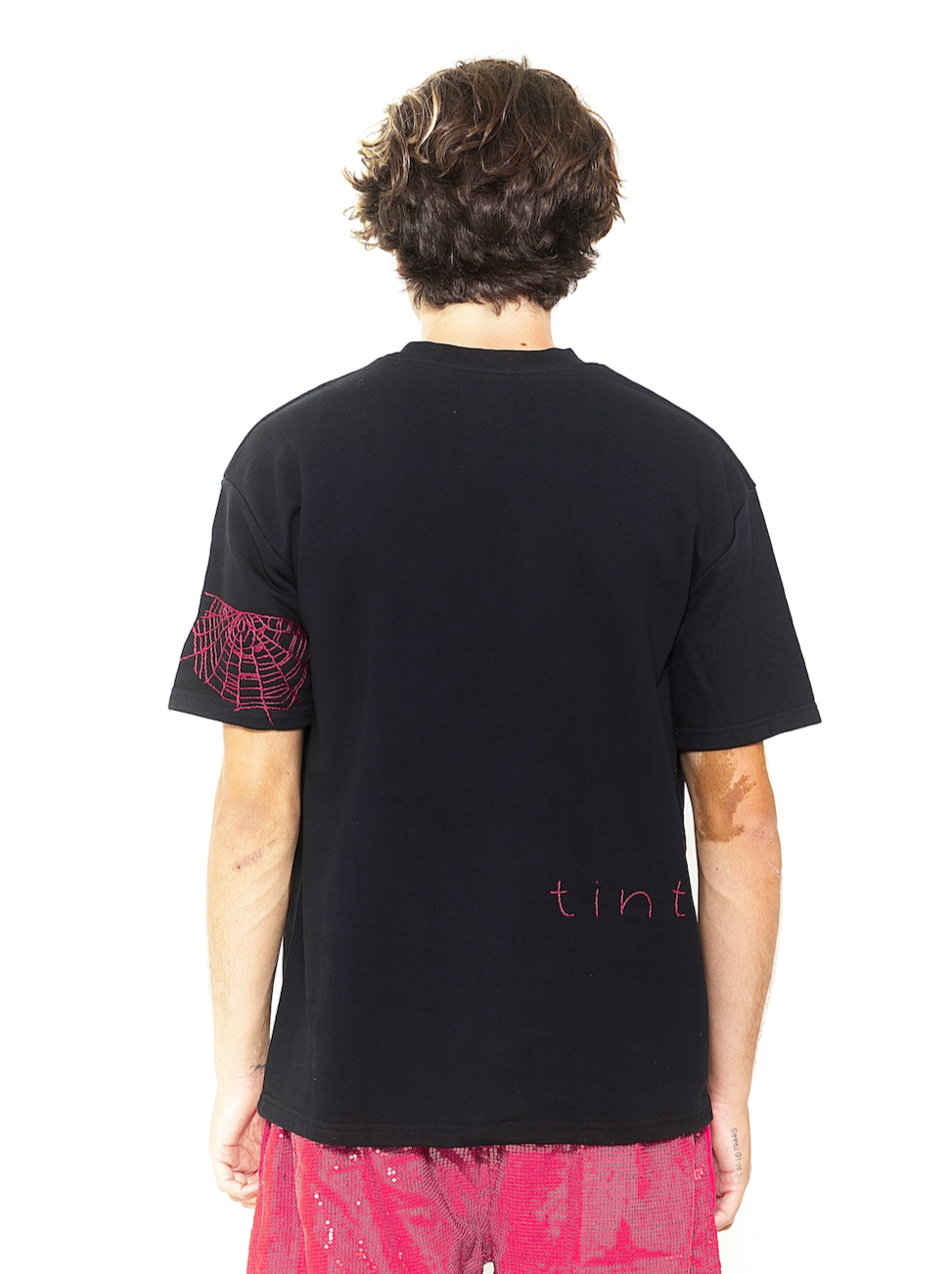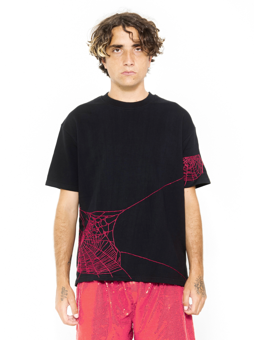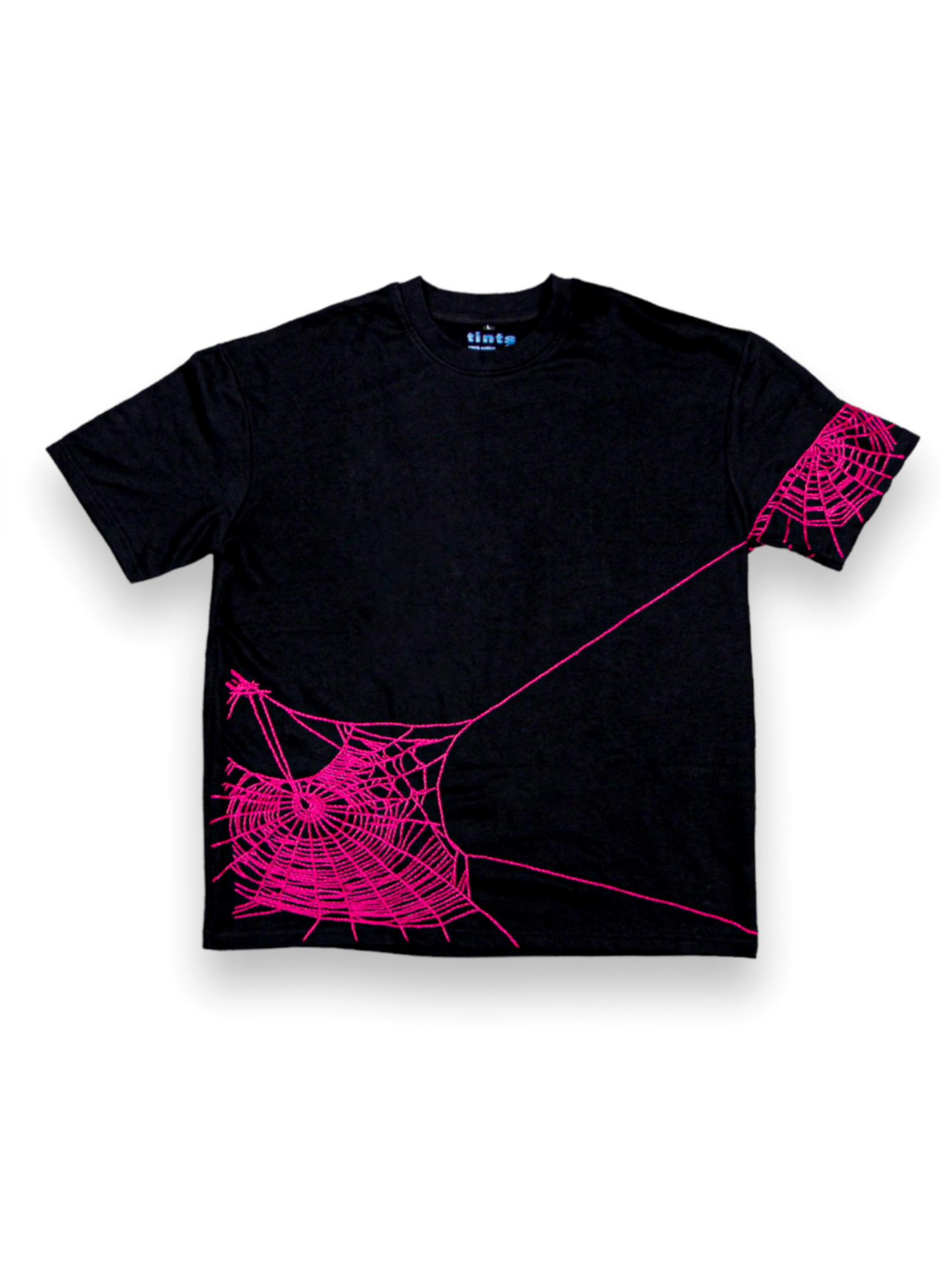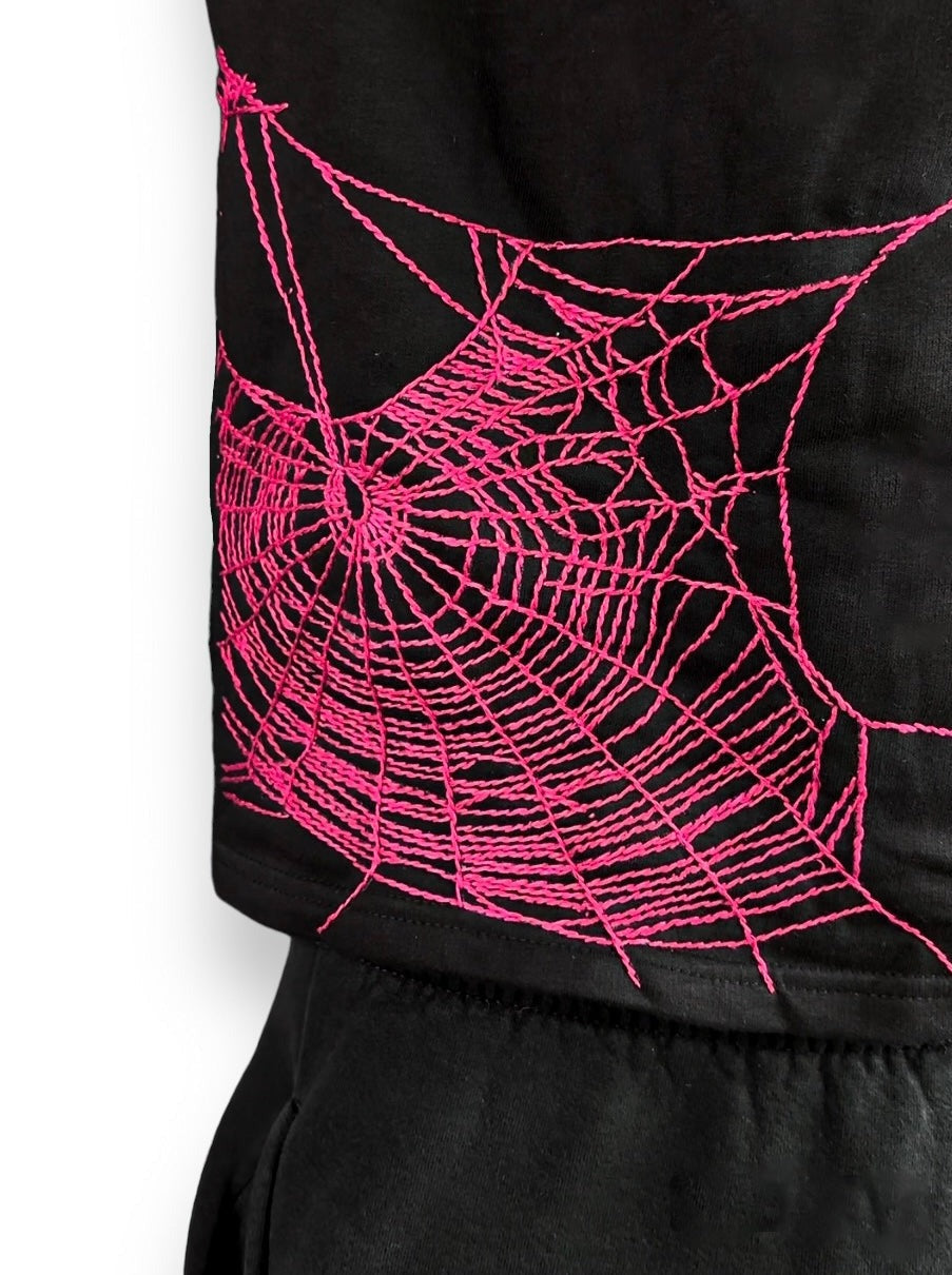 inspired by horror. hot pink spider webs.