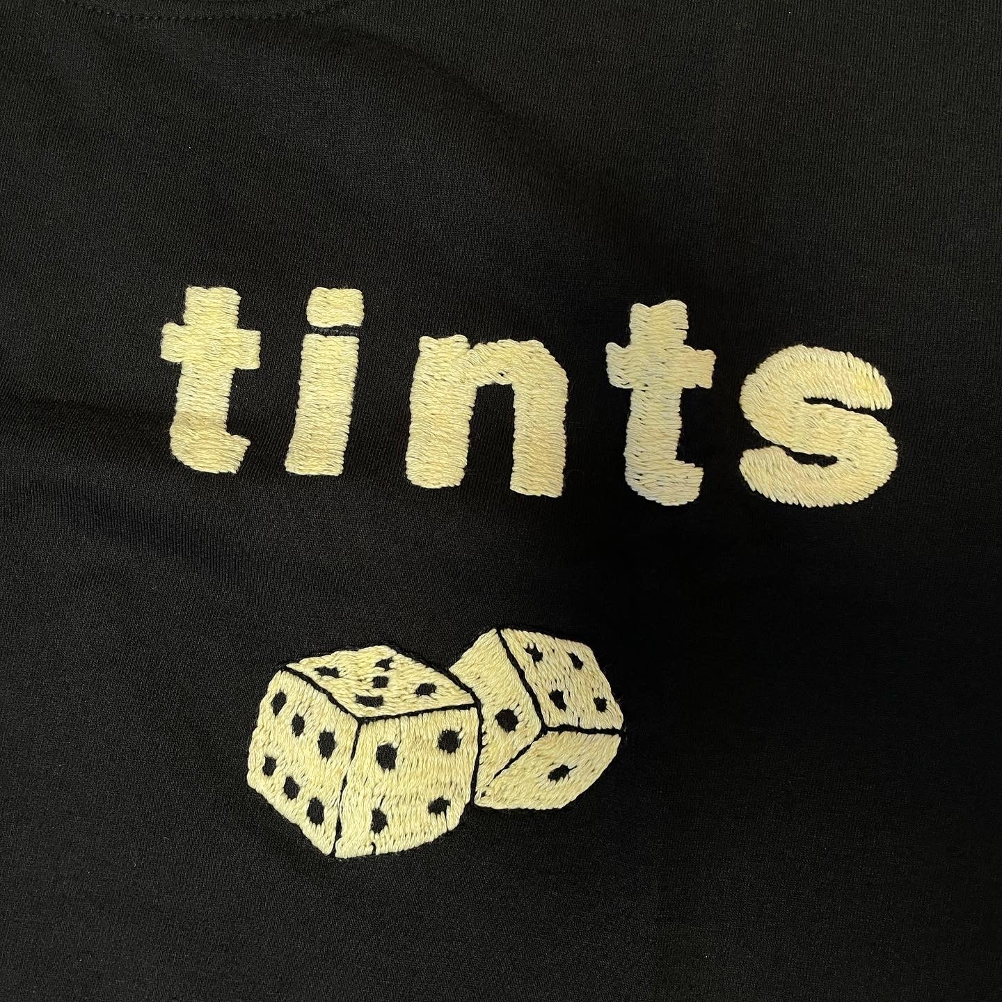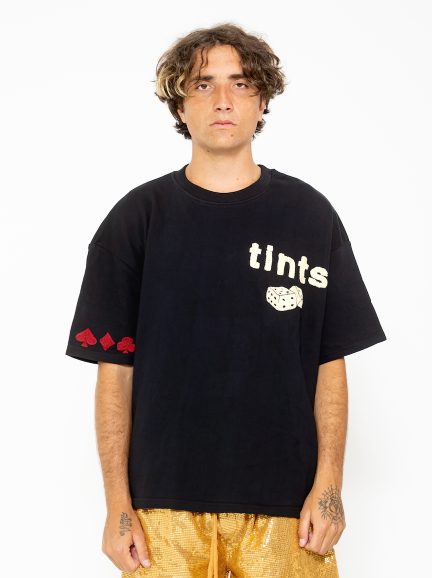 signature tints billard ball motif on back / off-white tints logo and dice on front / right sleeve with card suit in red